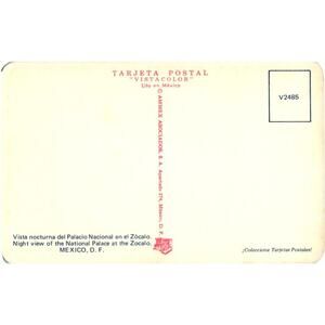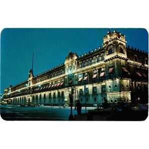 Night view of the National Palace at the Zocalo. MEXICO, D. F. Postcard
