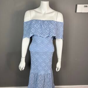 NightCap Clothing Dress Small Lace Cottagecore Off The Shoulder Blue DRAMATIC