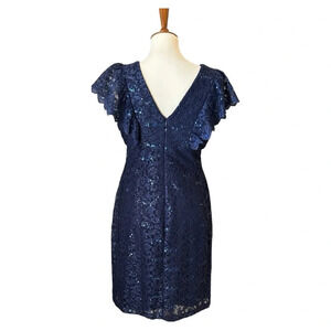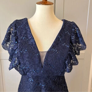 NightWay All Over Lace & Sequined Sheath Blue Dress Size 10
