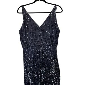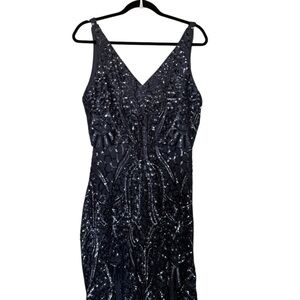 Shimmer and shine with every step in this sleeveless gown from Nightway, styled entirely in sparkling sequins on gauzy mesh.