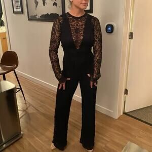 Nightcap Black Lace Flare Jumpsuit MEDIUM Bodycon Cocktail Vampire Goth USA $500
