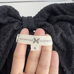 Nightcap Clothing Dress Womens Small Black Lace Tiered Maxi Cutout Bow Strapless