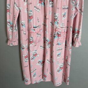 Nightgown Bears Gingham Pink White Twee Pockets Long Sleeves Women Sleep PJs