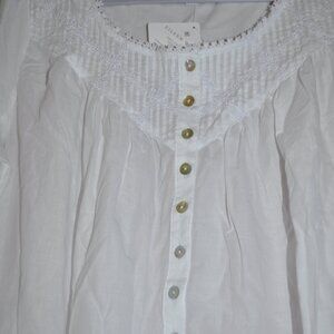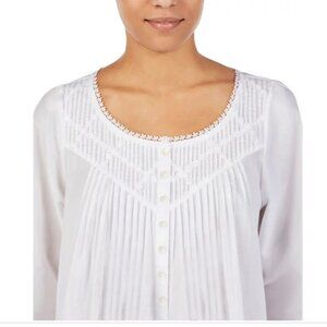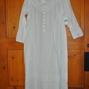 Nightgown Eileen West 100%Cotton long sleeves and pretty embroidered lace trim