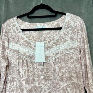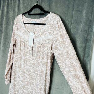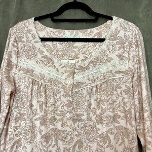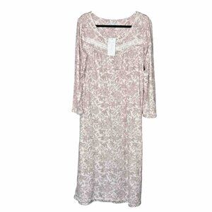 Nightgown Long Sleeve Small Pink Flower Pattern Warm Soft