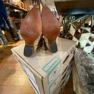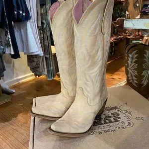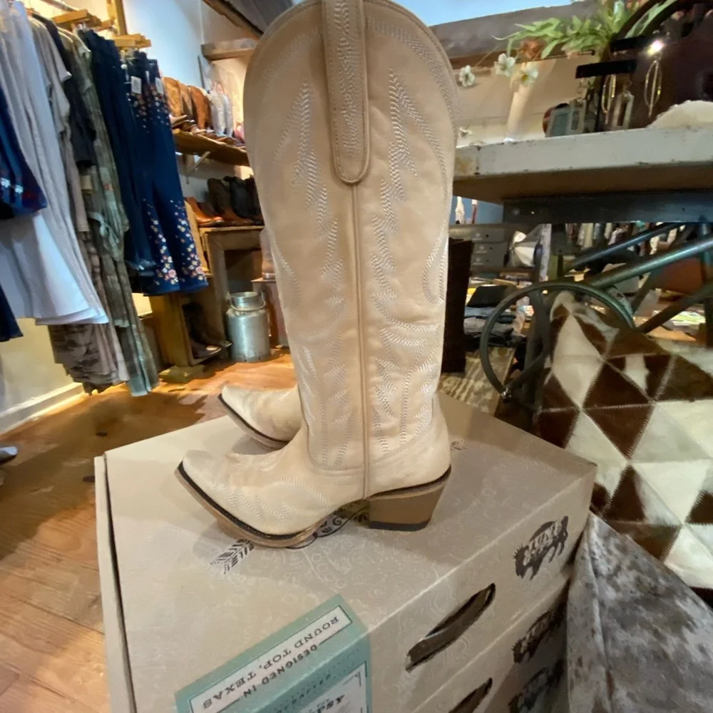 Junk Gypsy by Lane Nighthawk boots in the color bone. Designed at the Junk Gypsy world headquarters Round Top,Texas.