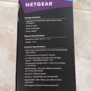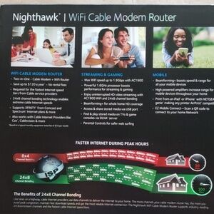 The Nighthawk AC1900 WiFi Cable Modem Router (C7000) from Netgear. Used for a few months before moving. In original packaging, like new.
