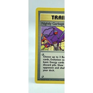 This vintage Nightly Garbage Run Team Rocket Trainer Pokemon card is a must-have addition to any collection. With a card size of standard, this Stage 2 Pokemon card features the attribute of darkness, illustrated by Sumiyoshi Kizuki, and has a card number of 77/82. The card is made of card stock material and has a regular finish.