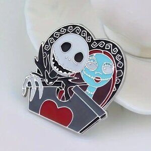 Nightmare Before Christmas Enamel Pin Jack & Sally Brooch Disney Goth Emo Scene
