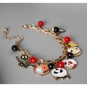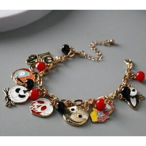 Add a touch of spooky romance to your style with this beautiful gold-tone charm bracelet inspired by The Nightmare Before Christmas. Featuring Jack and Sally charms, it’s the perfect statement piece for fans who love unique, themed accessories.