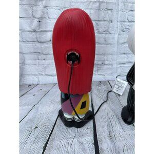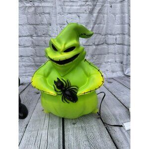 Celebrate the spooky season with this Nightmare Before Christmas Halloween Oogie Sally Jack Skellington blow mold set. This 14" tall set features the iconic characters from the beloved Disney movie, dressed up in their Halloween best. Made in the United States, this set is perfect for fans of the movie and collectors of Disneyana alike. Add some spooky charm to your collection with this unique and officially licensed product. In a great used condition sally has a small scratch on her eye “pictured” .