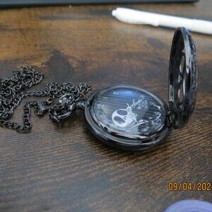 Long length chain accompanies a sophisticated Jack Skellington in this Nightmare Before Christmas Pocket Watch perfect accessory for Halloween and year round use. NO BATTERY comes in this.