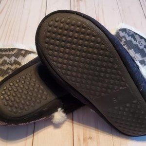 Nightmare Before Christmas Nonskid Slipper Size Small Woven outside with fur inside. Ties have pompoms on end, black grey and white