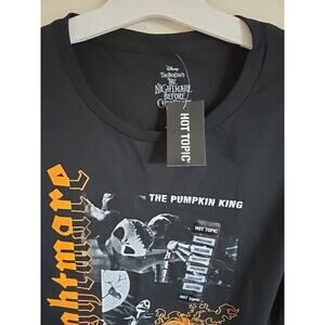 The short sleeves and unisex design make it a versatile addition to any wardrobe, and the shirt is available in a size medium. The Disney and Hot Topic brands are sure to impress, making this T-shirt a great gift for any occasion. Celebrate your love for Nightmare Before Christmas with this must-have T-shirt today!