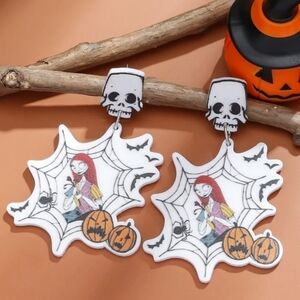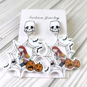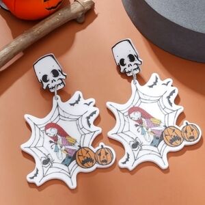 Nightmare Before Christmas Sally Web and Pumpkin Drop Earrings in White NWT
