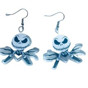 Nightmare Before Christmas Jack Skellington Heart Acrylic Drop Earrings