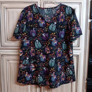 Nightmare Before Christmas V-Neck Print Scrub Top - Size Large