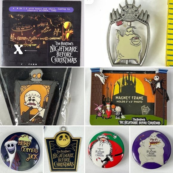 Nightmare Before Christmas Vtg Movie Promo Disney Lot Pins Button Frame Booklet