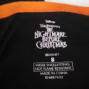 The best pair of Nightmare Before Christmas pajamas I've ever seen. I want them in my size! I have no size 8 kiddos that can wear them sadly. They are 100% cotton and very soft and stretchy. There are cuffed sleeves and ankles. Jack and Sally are holding hands and gazing into each other's eyes. The graphic reads FOLLOW THE MOONLIGHT. There is very slight natural fading. No flaws. In excellent pre-owned condition.