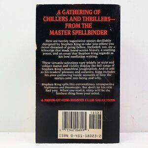 Nightmares and Dreamscapes by Stephen King vintage 1994 first Signet printing paperback book via Viking, ISBN 0451180232. Healthy, tight spine seemingly mostly unread. Ships safely bubble wrapped inside a sealed padded polymailer w/ cardboard backing :)
