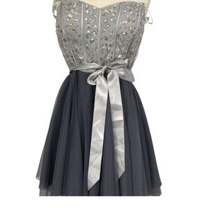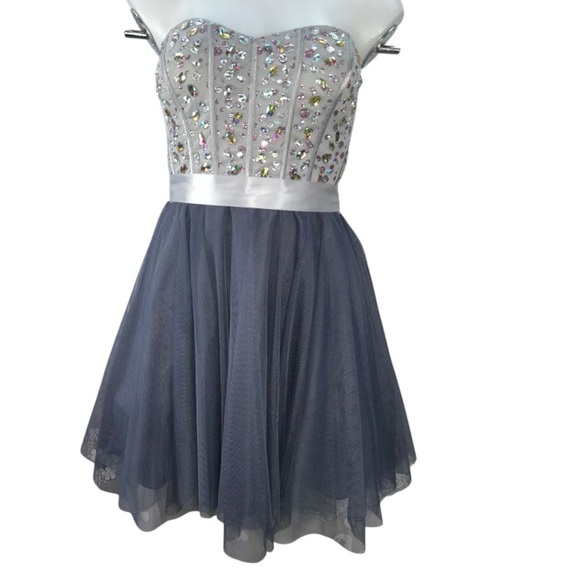 Nights By Teeze Me Junior Sz 7 Strapless Sweetheart Neck Fit & Flare Dress Gray