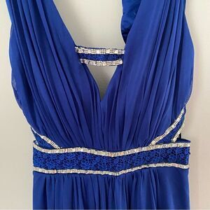 Nights by Teeze Me Junior’s Blue Sparkly Deep V Open Back Neck Mini Dress size 3