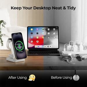 * Why Choose Us--New Upgraded:3-in-1 Magnetic wireless charger has greatly improved its appearance, charging speed(15W Max) and safety. Exquisite ABS base design to enhance the texture, stability and heat radiation