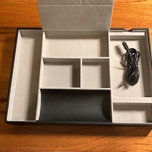 Nightstand organizing charging station. Great gift for guys or gals. Organizer tray has several compartments for jewelry, eyeglasses, keys, phone, etc.. NWT & Smoke free/Pet free home. See photos for complete description/details. $37 on amazon. Crosspost to women