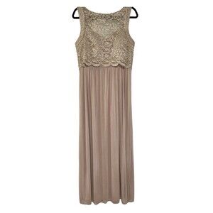 Nightway Champagne Lace Formal Empire Elegant Prom Wedding Dress Gown Size 14P