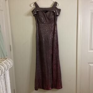 Nightway Glitter Tornazol Silver Fuchsia Gown Long Formal Dress Size 4 NYE