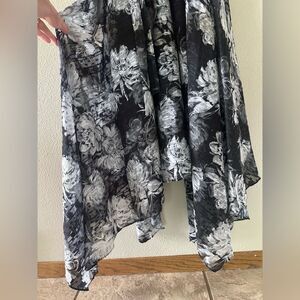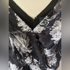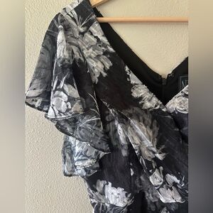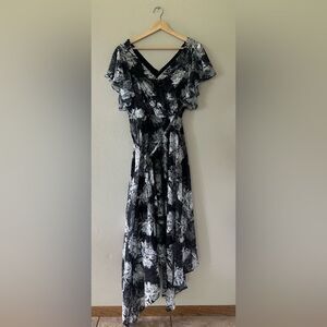 Nightway Textured High Low Flutter Sleeve Black and White Floral Midi Dress 8