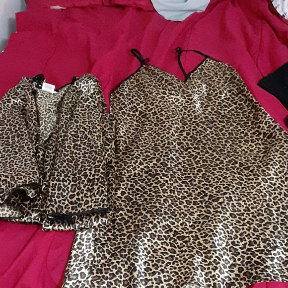 Secret treasures silk leopard print nighty with robe