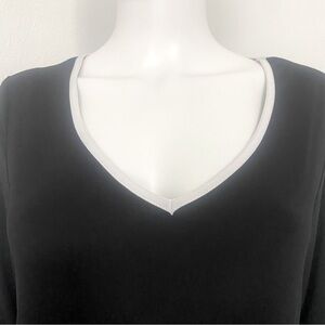 Nik and Nash Comfy Black Long Sleeve Dress Size Large White Line V-Neck Made USA