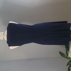Nik and Nash Navy Blue V-Neck Mock Wrap Top Sleeveless Summer Dress in Size Small is great for the office or a night out.