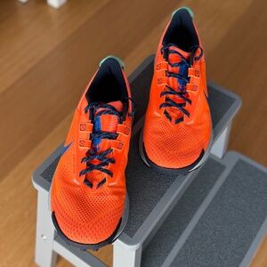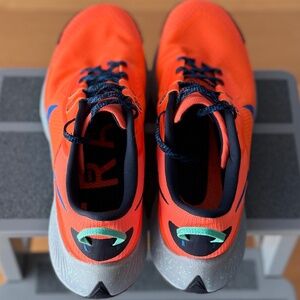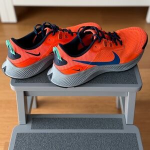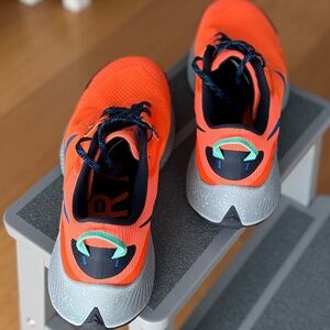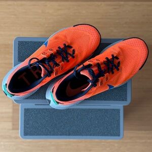 NWOT. Never worn. Colors: Total Orange/Signal Blue. Upper mesh construction. Finger loop. Rubber bumper toe cap. Nike React cushioned midsole. Rugged outsole grip.