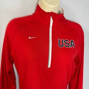 Nike 1/4 Zip Pullover USA Shirt Long Sleeve Women's S Red Reflective