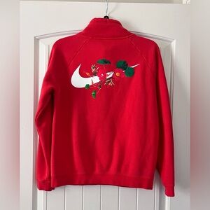 Nike 1/4 Zip Sweatshirt Small Red Coral Graphic Floral Logo BQ8846 696 Women’s