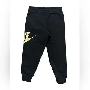 Nike 2 Piece Set Hoodie Joggers Black With Gold Logo Boys Size 5 NWT