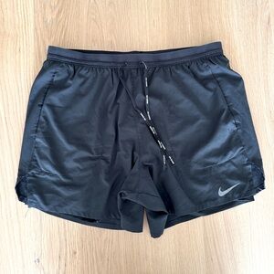 Nike 2-in-1 Lined Running Shorts in black. Full and breathable boxer brief liner. Two side pockets, one zipped back pocket, interior pouch.