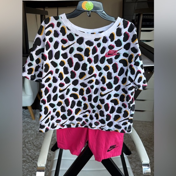 Girls size 6x. Nike leopard print short sleeve shirt and hot pink shorts. Vguc.