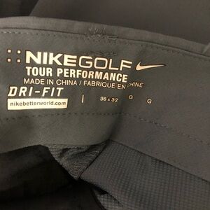 Nike Gray Golf Tour Performance Dri-Fit Straight Leg Pants tagged36x32 but inseam measures short at 27.5 inches. See photos for measurements
