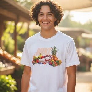 • Graphic: Vibrant fruit collage with Nike Swoosh and sneaker