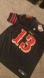 Black football jersey with red and gold accents. Features number 13 and name on the back.