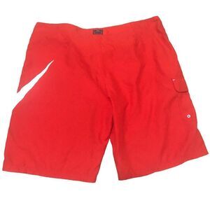 Nike 523274-657 Red/White Swoosh Board Shorts Swim Trunks Men's Sz 38