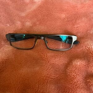 Stylish black glasses with yellow Nike logo. Sleek design for everyday wear.