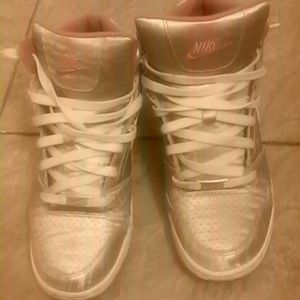They are clean no damage except the blue pen mark shown, cant seem to find a way to remove it. Very comfy, the small nike symbol in the inside of the shoe is gone because of wearing them, but other than that they're great for everyday use. They are a silverish gray color and pink on the inside