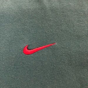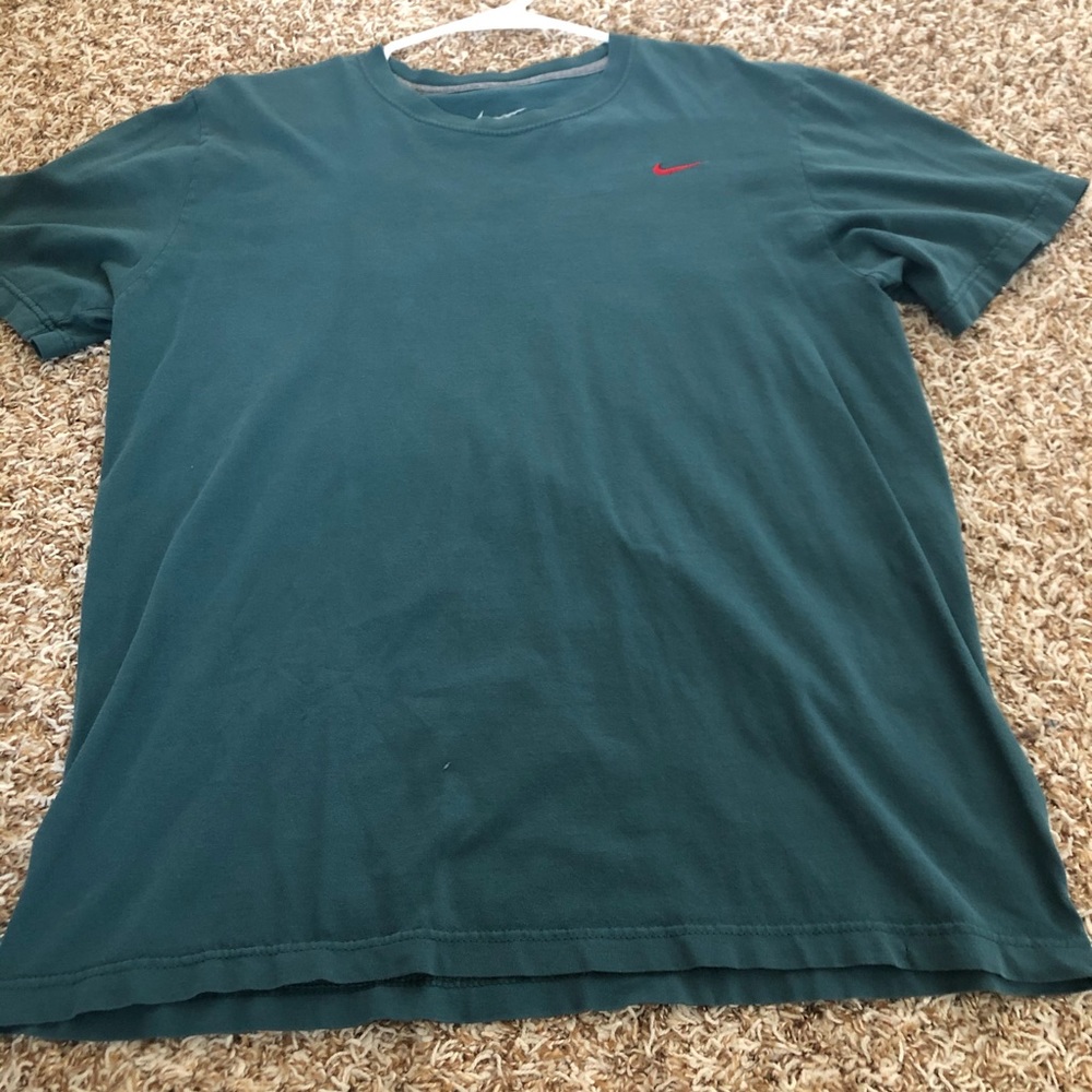 Green Nike t-shirt with the red loge embroidered top right hand side. Slightly used . More on the loose side