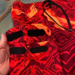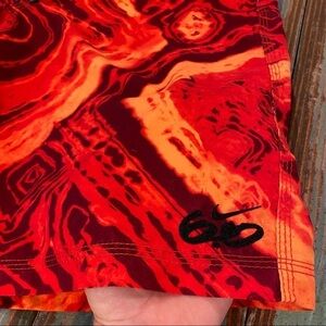 Nike 6.0 Boardshorts Size 28, Tie Dye Red & Yellow, Bright Aztec / Psychedelic / Tribal Design, Surf. Preowned. Nice condition! These groovy board shorts are perfect for the beach or swimming pool! You will love the all over bright print.