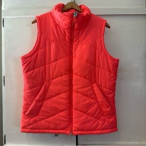 Nike 6.0 super bright coral / pink / orange puffer vest. Much brighter than photos show! Zip front with double zipper, 2 front zip pockets, hidden inside pockets. Nike 6.0 line. Winter gear. Winter sports. Ski vest. Snowboard gear. Excellent condition, like new condition, worn only a couple hours!