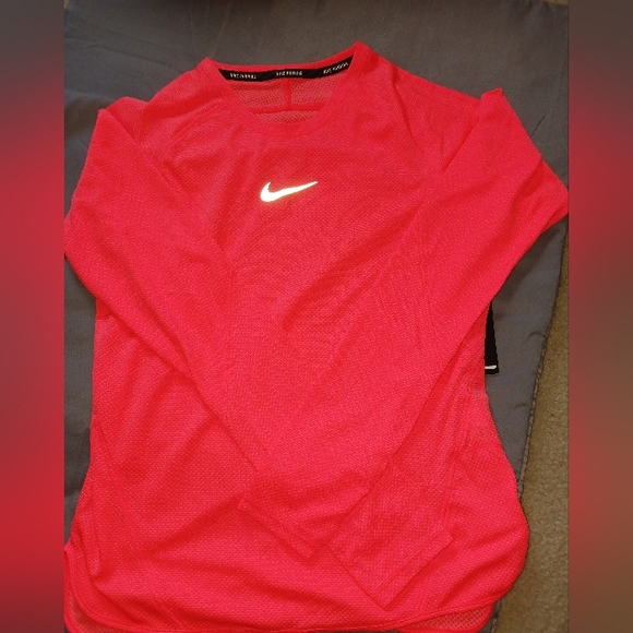Nike Aeroreact Dri Fit long sleeved shirt Color- Orange Size - Medium Never worn. Has small hole at top front right and top back right (see photos)